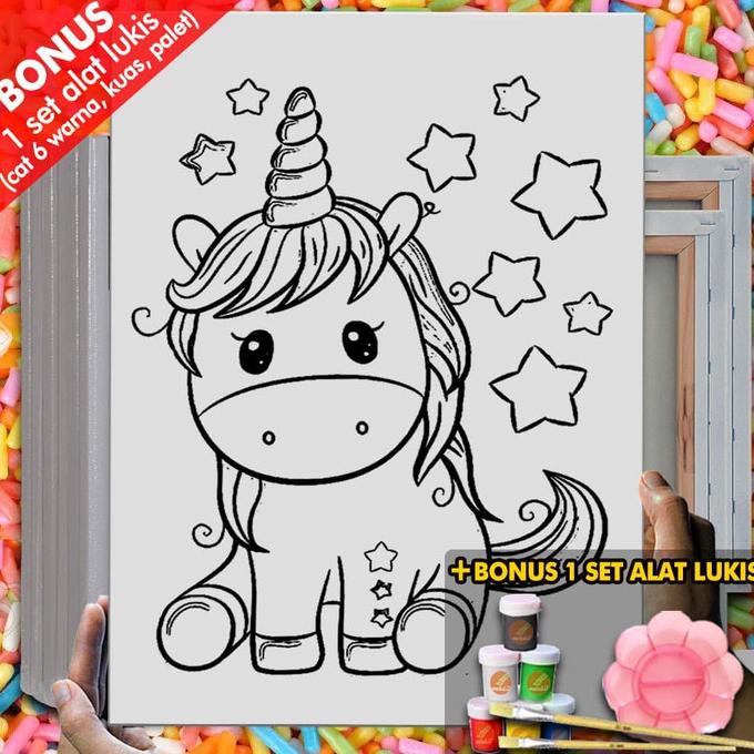 Kanvas lukis anak cute unicorn baby canvas coloring mewarnai mel1203 terbaru.